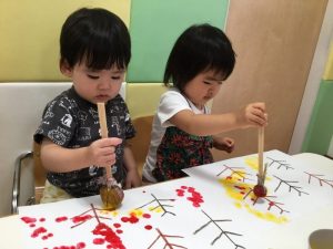 紅葉はタンポを使って自由に葉っぱを描いていきましたよ??