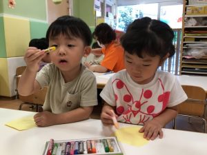どんぐりはクレパスを使って自由にお絵描きをしましたよ![]()