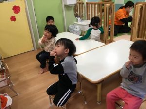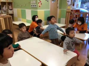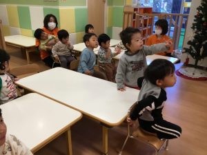 お部屋もクリスマスムードに日々なっていく中、絵本の中だけでなく、窓の装飾にまで反応していた可愛い子どもたちでした![]()