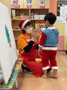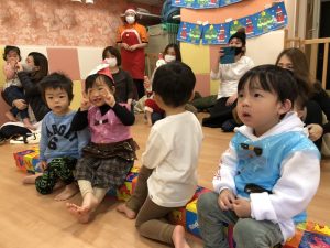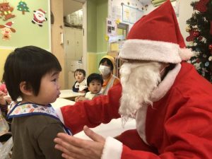 サンタさんを見て、ドキドキしてお母さんから離れられないお子さんもいましたよ
