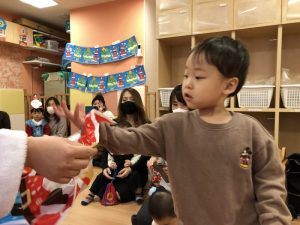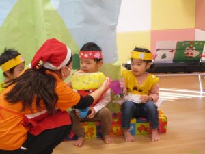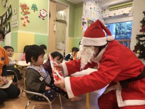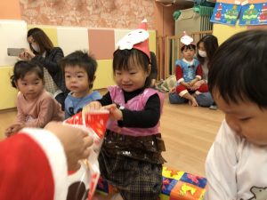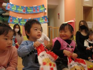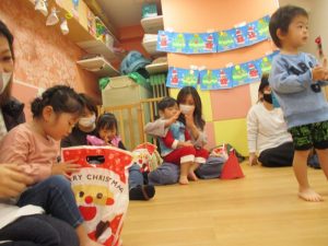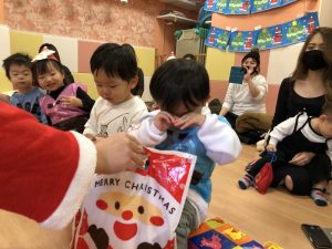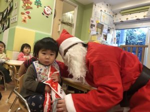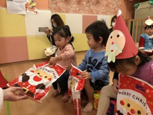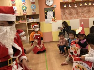 親子発表会当日、欠席をしたお友だちは、後日サンタさんがプレゼントを渡しにきてくれました