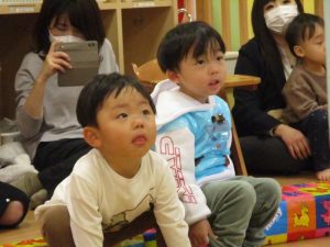 それでは、前回お伝えしました通り、親子発表会のりんご組さんの様子をご覧になって頂こうと思います