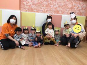 保育園では当日、鬼さんと福の神さんが遊びにきてくれました![]()