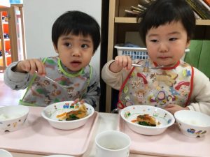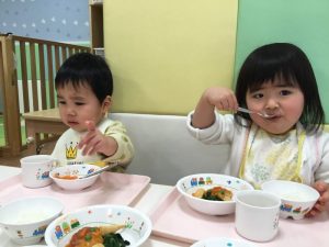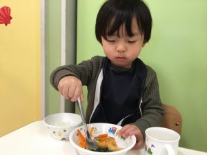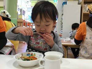 給食では「赤鬼ハンバーグ」とメニューが出てきて嬉しそうに食べていましたよ![]()