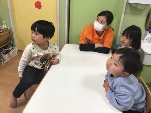 くまのくーくんとまーちゃんが楽しく飾り付けをしているお話に子どもたちも夢中になって見ていましたよ![]()