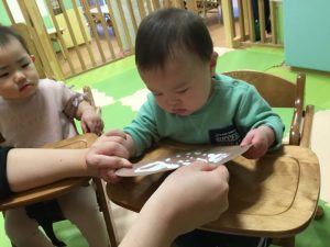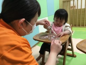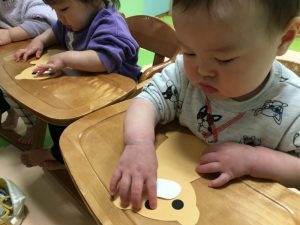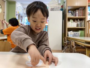 保育者に聞きながら、取り組んでいます![]()