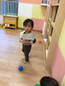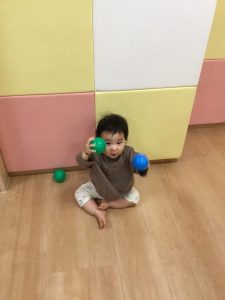 ボールを両手にニコニコしていたり、はしゃいで走り回ったり、ボールをえいっ!と投げていたり、両手を挙げてイェーイと喜んでボールに夢中で遊んでいます?
