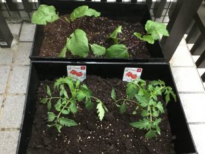 今は、少し苗?が伸びて、トマト?のプランターには黄色い花が咲いていますよ?