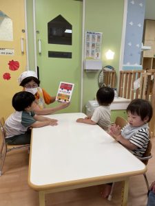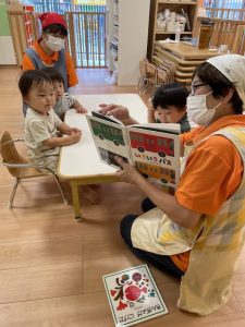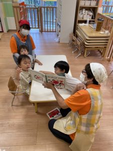 今回の絵本ブログは土曜日保育の絵本の読み聞かせの様子を