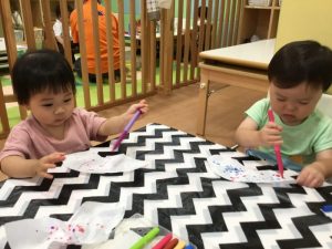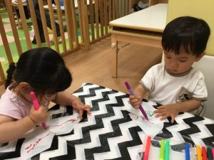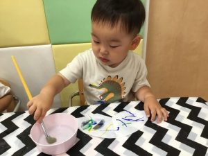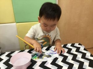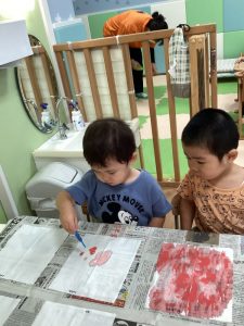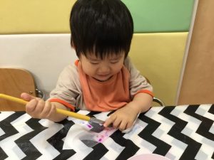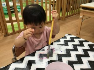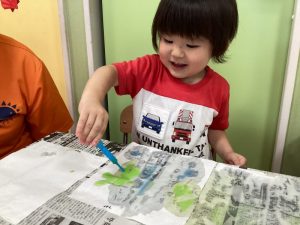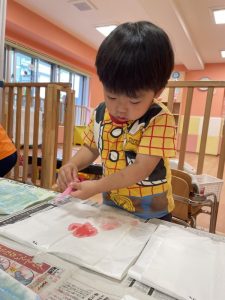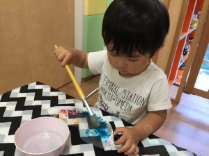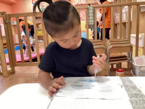自分で筆を水に付けているお友だちもいましたよ?