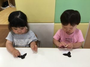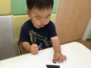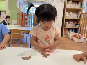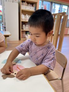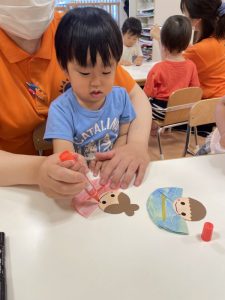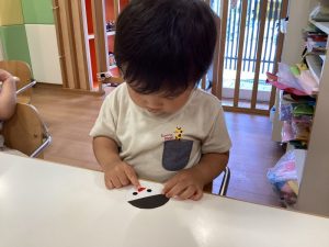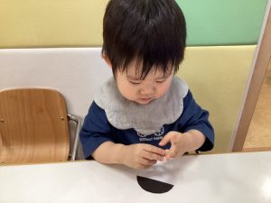 月齢が高いお友だちは、自分で台紙からシールを剥がして貼っていました?