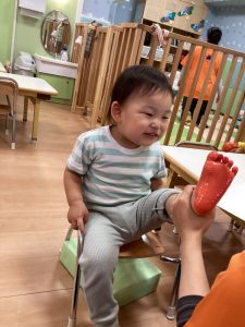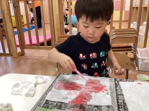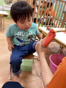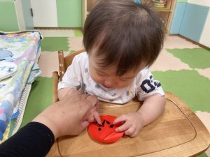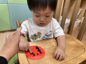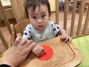 月齢の低いお友だちも、指にくっ付いたシールを一生懸命剥がして取り組んでいましたよ‼️