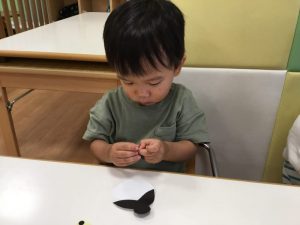 次に、織姫と彦星の目をシールで貼りました?