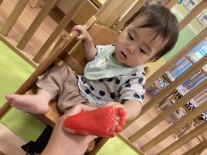 なにやら足形を取っていますよ?