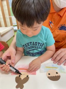 口と頬は保育者と一緒にマジックで描いていましたよ?
