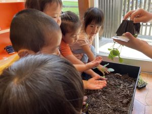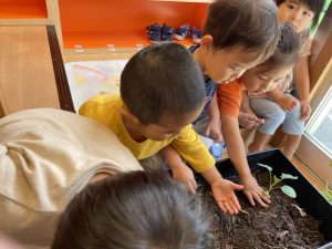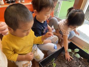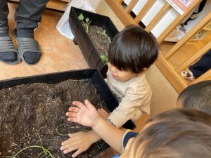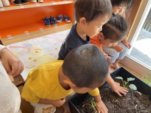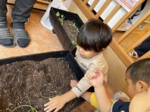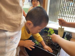 先日、りんご組さんがプランターに苗を
