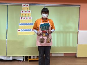 最後に、保育者からの出し物で、エプロンシアター「三匹のこぶた」を視聴しました🐷