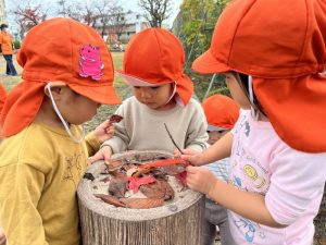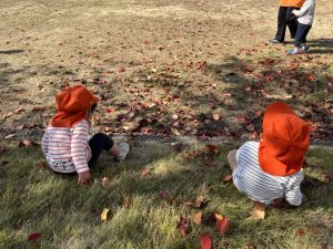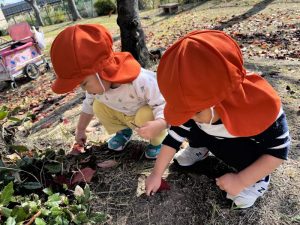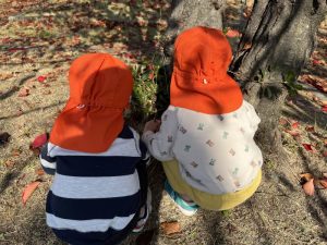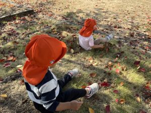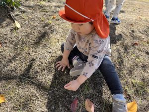 仲良く落ち葉や砂を触って遊んでいました❤️