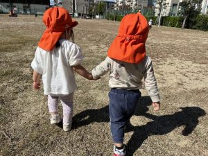 仲良く手を繋いで散策をするいちご組のお友だちを発見👀💕