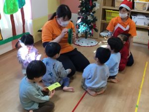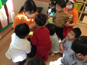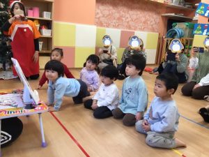 楽器遊びの後は保育者からの出し物のプレゼント🎁