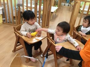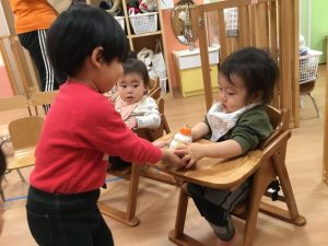 ベビーチェアのもも🍑ぐみさんにも触らせてくれました![]()