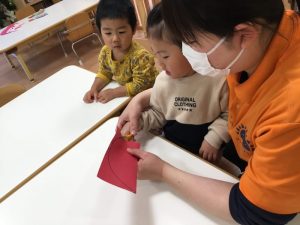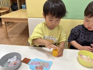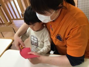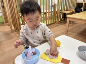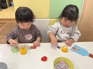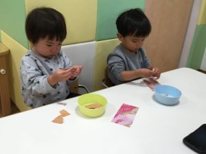 折り紙をちぎって、糊で上手にペタペタしていますよ😊