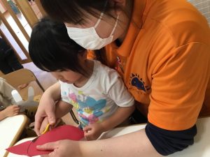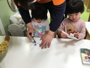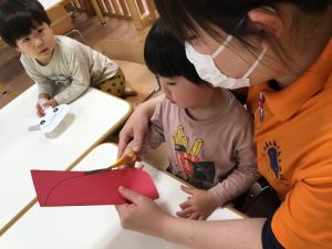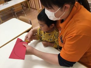 次は、ハサミを使ってだるまの形に切ります!