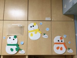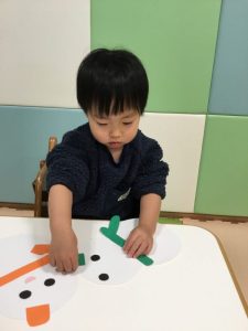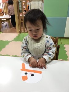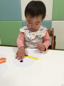 続いて、ゆきだるまにお顔を付けていきます☃️