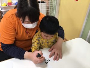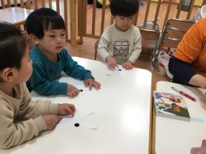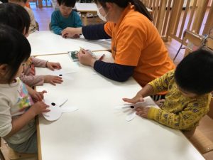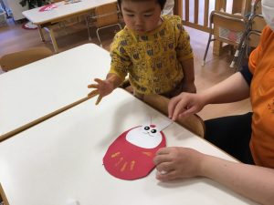 続いて、うさぎだるまのお顔貼りです🐇