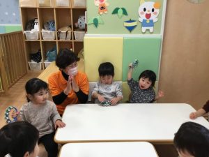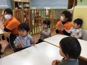 最初は「きらきら星」の歌に合わせて手拍子をとります👏