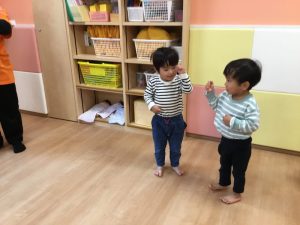 お友だち同士で見合って、真似してとても楽しそうな様子ですね✨