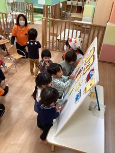 まず初めに、「今日は何月ですか?」と保育者が聞いてみると、
