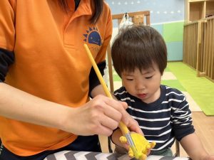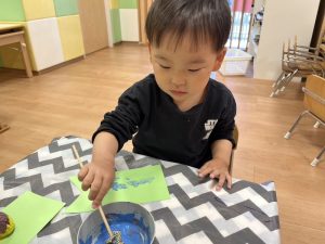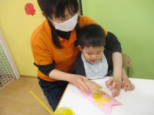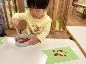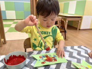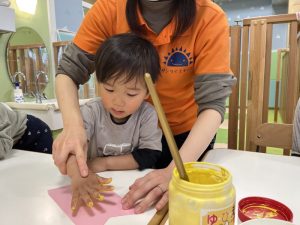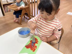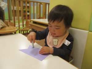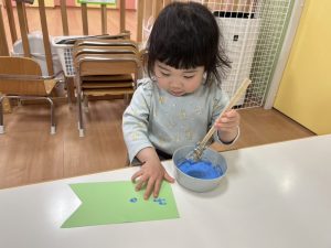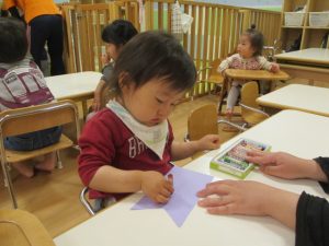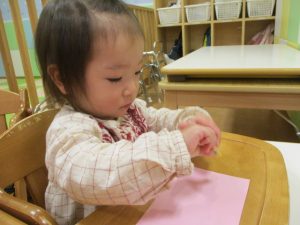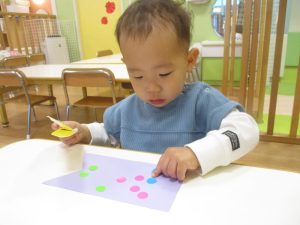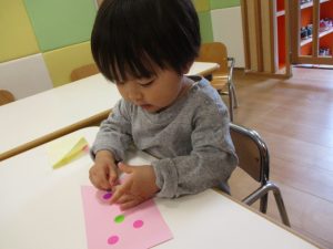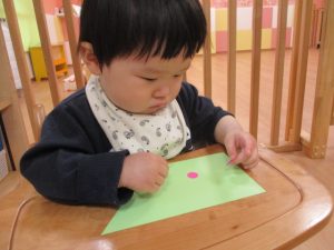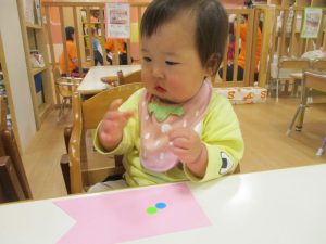 初めてのシール貼り…不思議そうな表情も可愛いです☺️