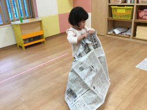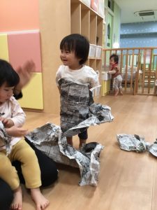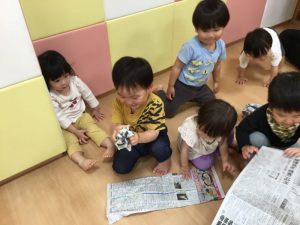 さてある雨の日の遊びの様子をご覧いただこうと思います。この日は登園のお友だちが少なかったのですが、元気に新聞遊びをしましたよ📰保育者からのお話です![]()