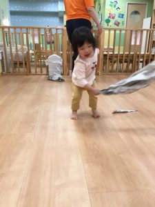 「おそうじー」と言いながら履くまねっこをするお友だちも、楽しかったようで何度もしていましたよ🧹