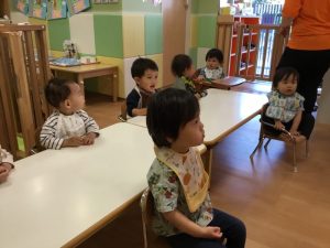ゆうこ先生の読む絵本をじっと見ていて