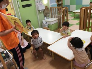 最後に少し絵本に触れて満足そうにしていた