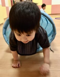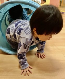 「ハイハイで…頭を低くして…よいしょ、よいしょ」