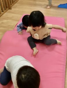 「僕はハイハイで!」「私はお尻で滑りながら!」