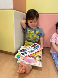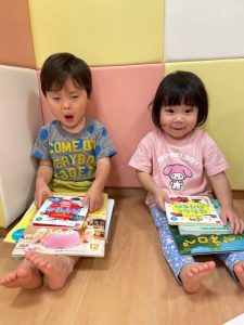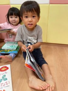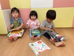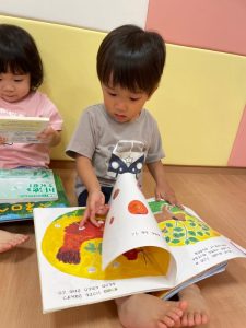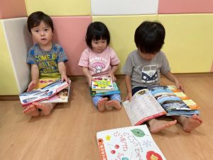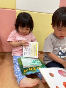 自由に絵本を読んでいるりんご組さんの様子です😊