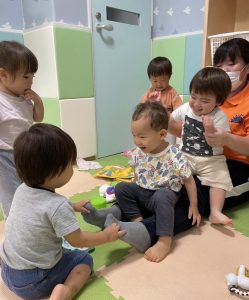この日はみんなピッタリ仲良くくっついて絵本が始まるのを待っていました😊📚