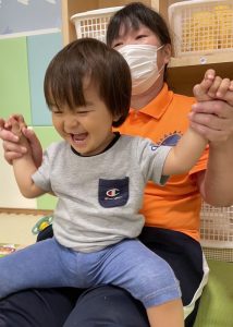 先生のつま先を持って、先生バスが崩れないようお手伝いをしてくれる子もいました🌟