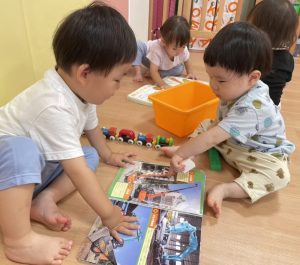 一緒に同じ毎日を過ごす中で、お友だちへの興味・関心が芽生え自ら関わり合いをもつ姿がよく見ら