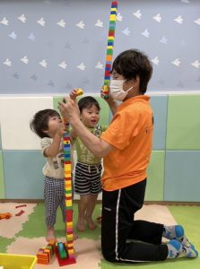 朝、人数が少ない時だからこそ出来るブロックタワー作り🗼🧱