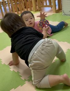 自分より小さいお友だちにどう関わったらいいか戸惑っていたりんご組さん…🍎