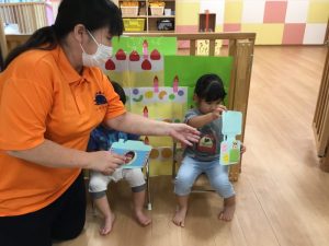 保育者と一緒に頑張って2本指も立てていましたよ✌️