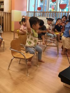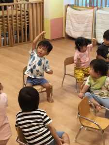 朝のお歌を歌い、お名前を呼ばれてお返事をしますよ🖐️