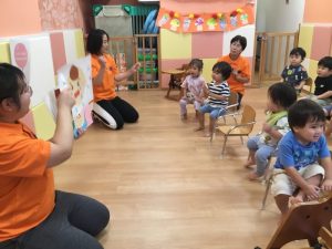 お歌が終わると英語がはじまりまーす。