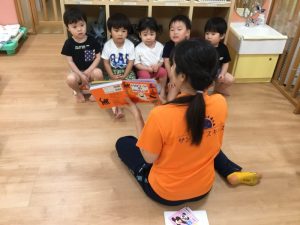 ハロウィンの絵本を読んでもらいましたよ😁
