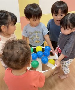 てボールが落ちないようにそーっと運んでみたり…保育者が伝えた遊び方をするだけで